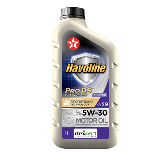 Havoline® ProDS® Full Synthetic Motor Oil com Tecnologia Escudo Protetor é um lubrificante de última geração e alta performance. Atende à mais recente categoria API para lubrificantes de carro de passeio, API SQ. Formulado com óleos básicos 100% sintéticos de altíssimo desempenho e aditivos de avançada tecnologia combinados com um booster, proporciona total proteção ao motor. Foi desenvolvido para atender aos mais recentes requerimentos de lubrificação dos modernos motores de quatro tempos flex, à gasolina, etanol e GNV, principalmente aqueles equipados com injeção direta e/ou turbocompressor. Recomendado também para veículos híbridos. Excede as mais atuais e exigentes especificações da indústria e das montadoras.
