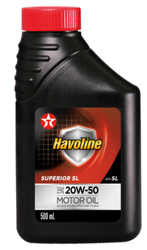 Havoline Superior API SL SAE 20W-50 é recomendado para motores de quatro tempos Flex (ou bicombustíveis), a gasolina, etanol e GNV, operando em quaisquer condições de serviço que requeiram um produto que atenda às especificações SAE 20W-50 e API SL.